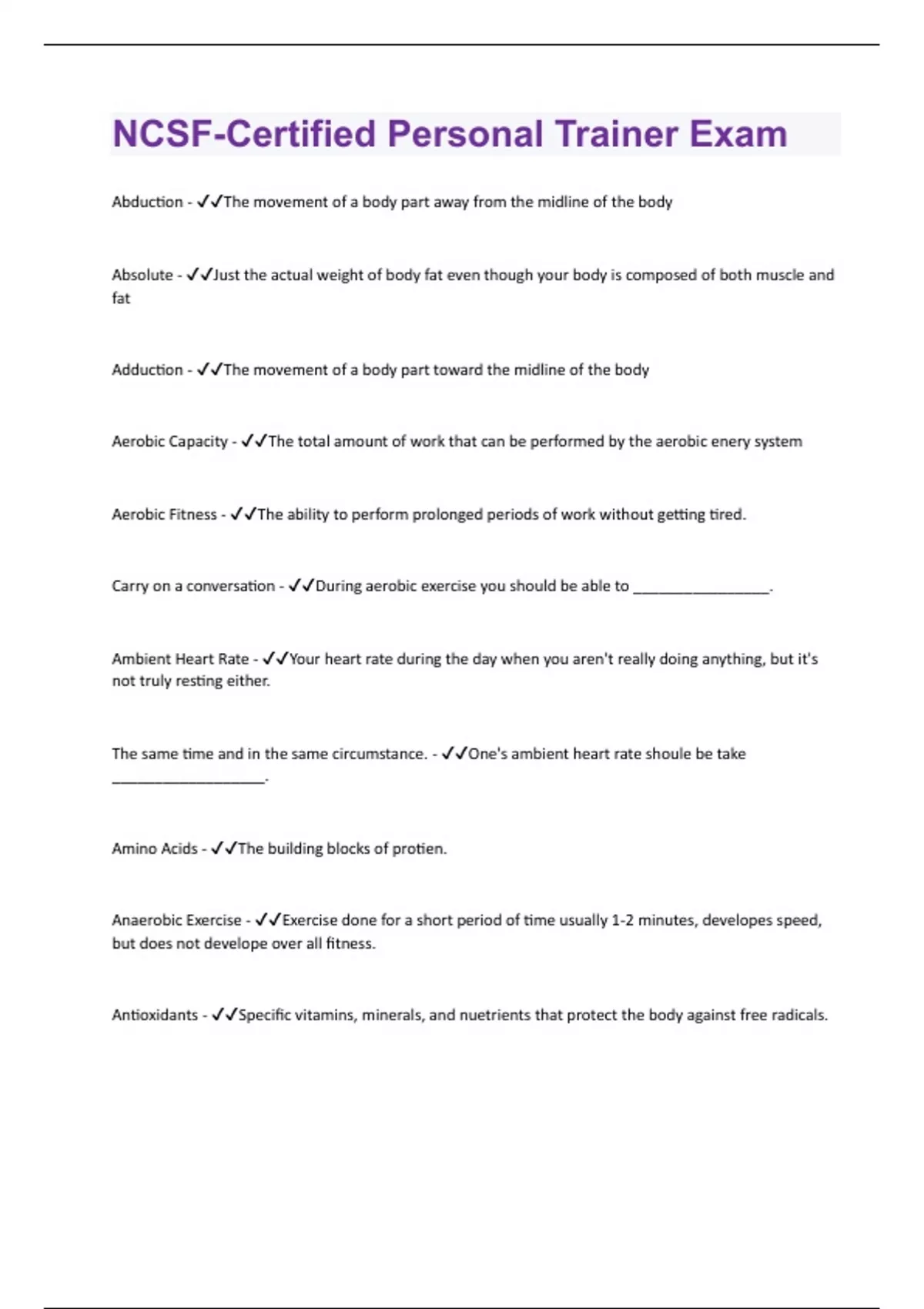NCSF-Certified Personal Trainer Exam| Questions with 100 % correct Answers | Verified
