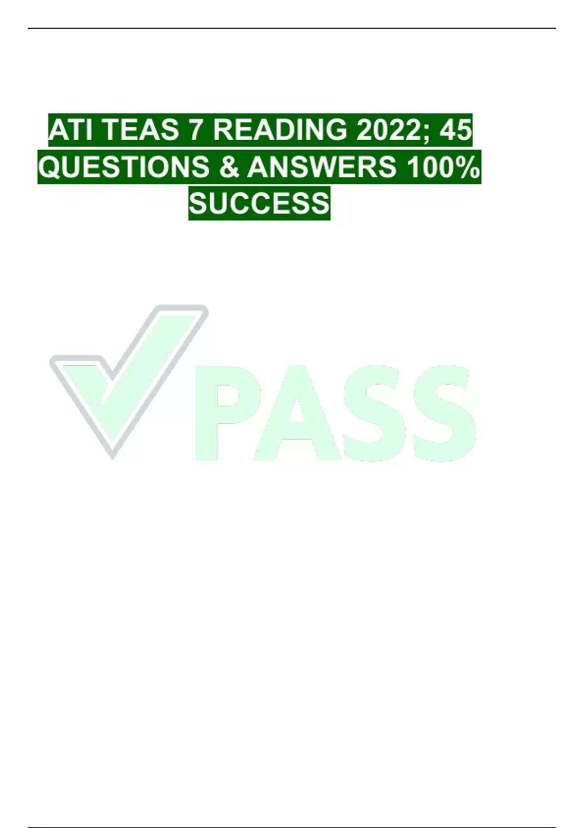 ATI TEAS 7 READING 2022; 45 QUESTIONS & ANSWERS 100% SUCCESS
