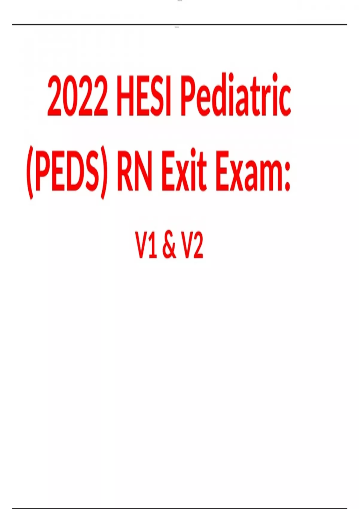Hesi Pediatric (PEDS) Exit Exam Version 1 and 2! RATED A+