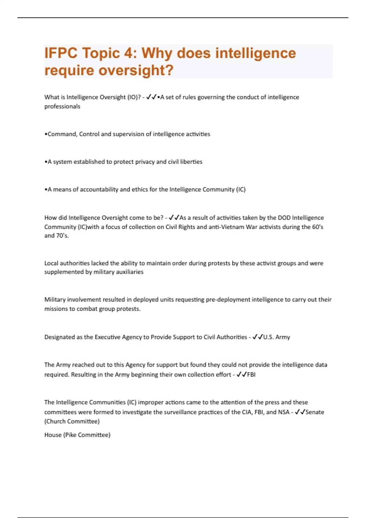IFPC Topic 4: Why does intelligence require oversight| Questions and Answers with complete solution