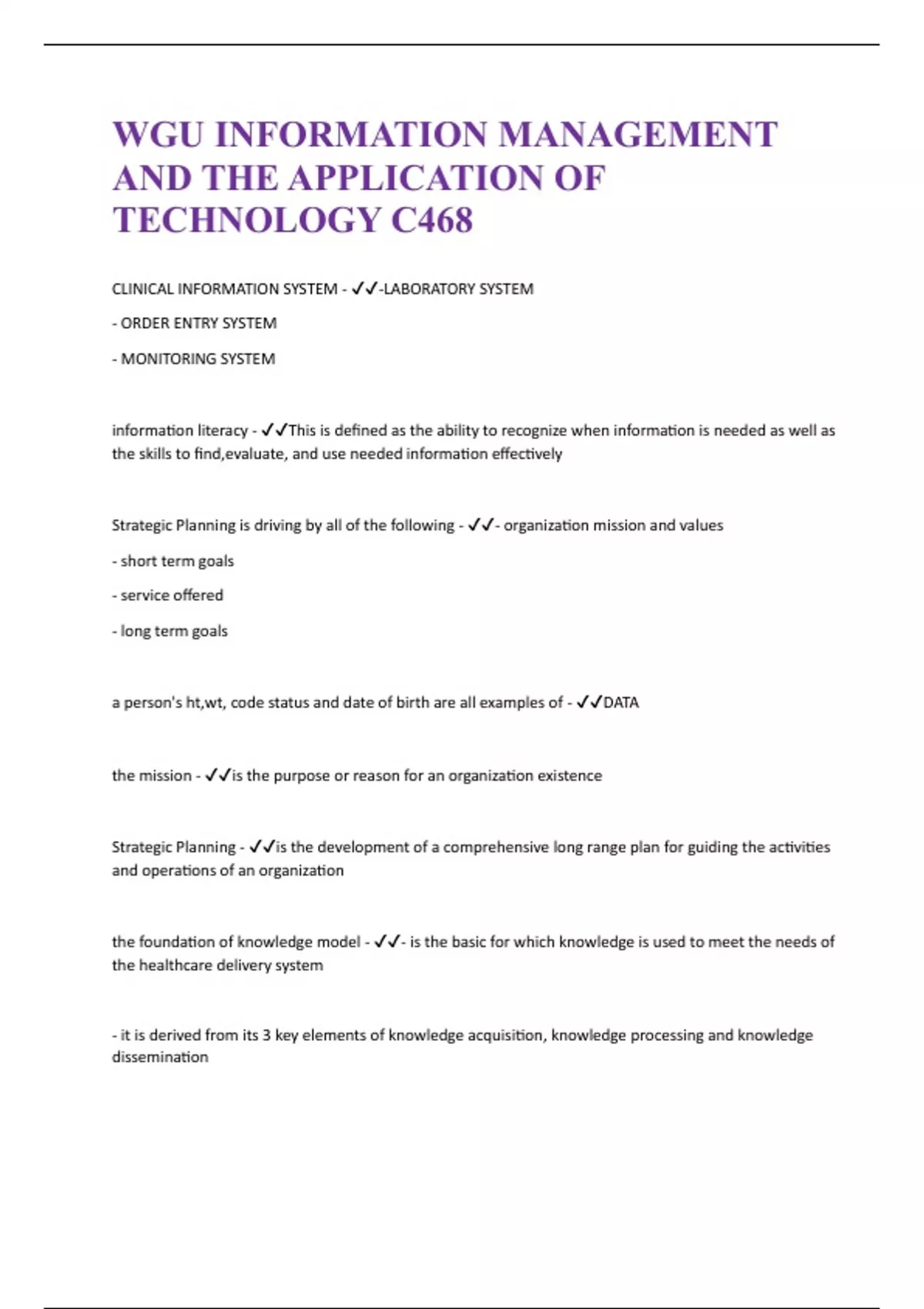 WGU INFORMATION MANAGEMENT AND THE APPLICATION OF TECHNOLOGY C468 | Questions and Answers with complete solution