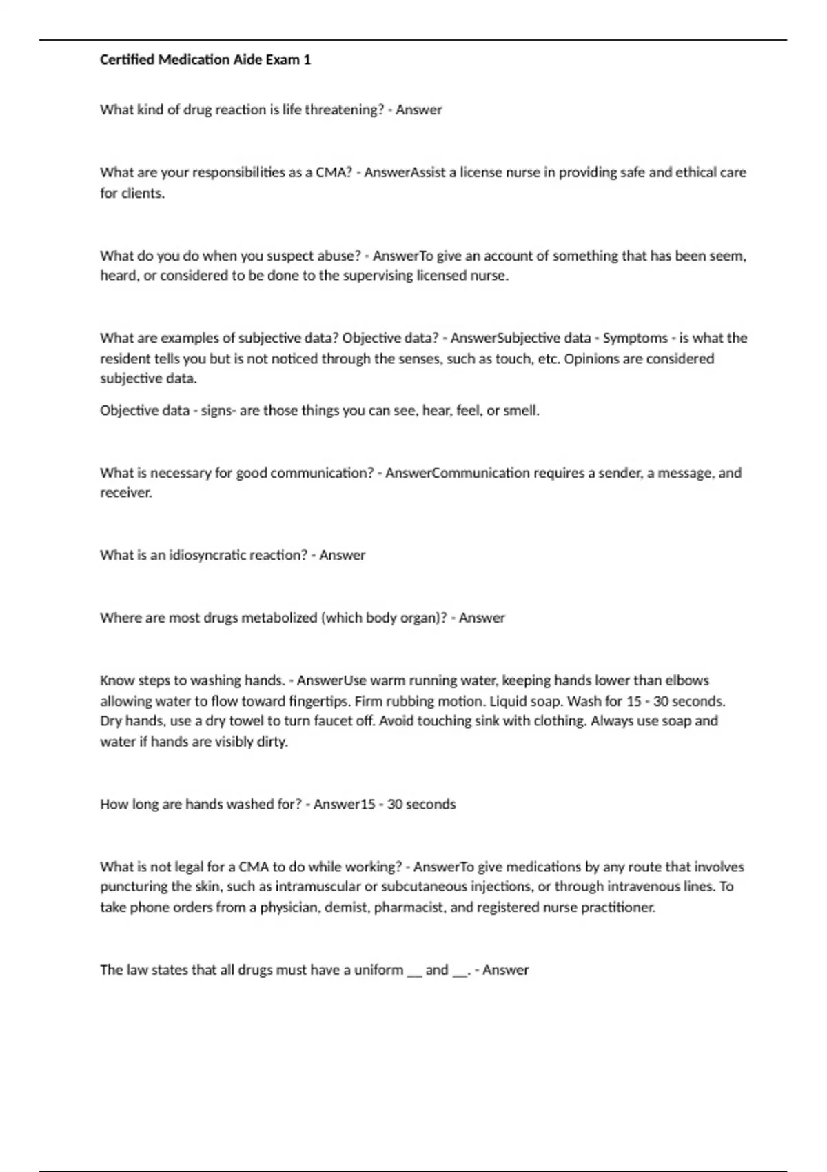 - Certified Medication Aide Exm