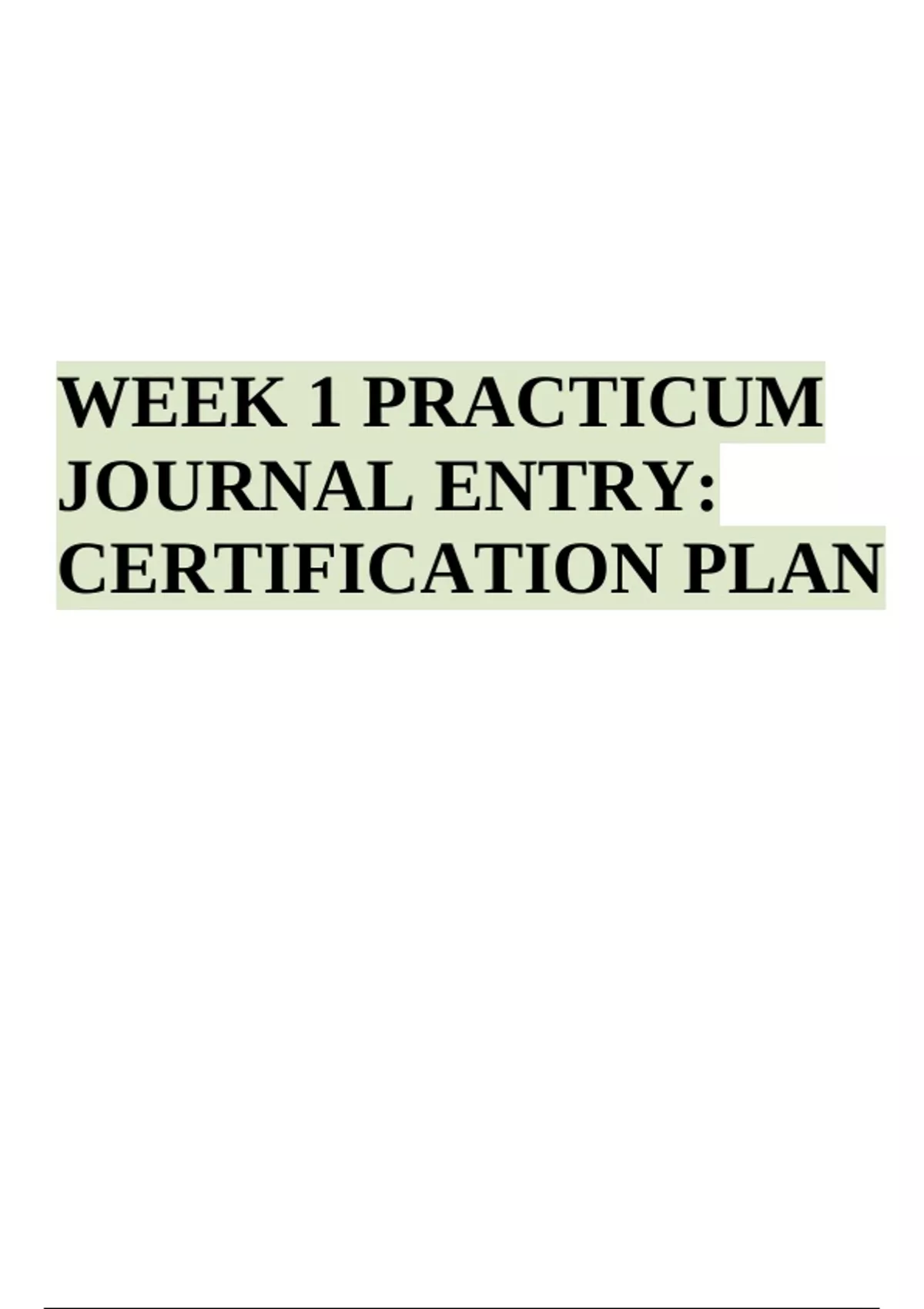 WEEK 1 PRACTICUM JOURNAL ENTRY: CERTIFICATION PLAN