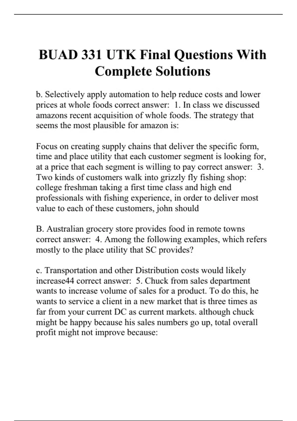 BUAD 331 Exam 2 Questions With Complete Solutions