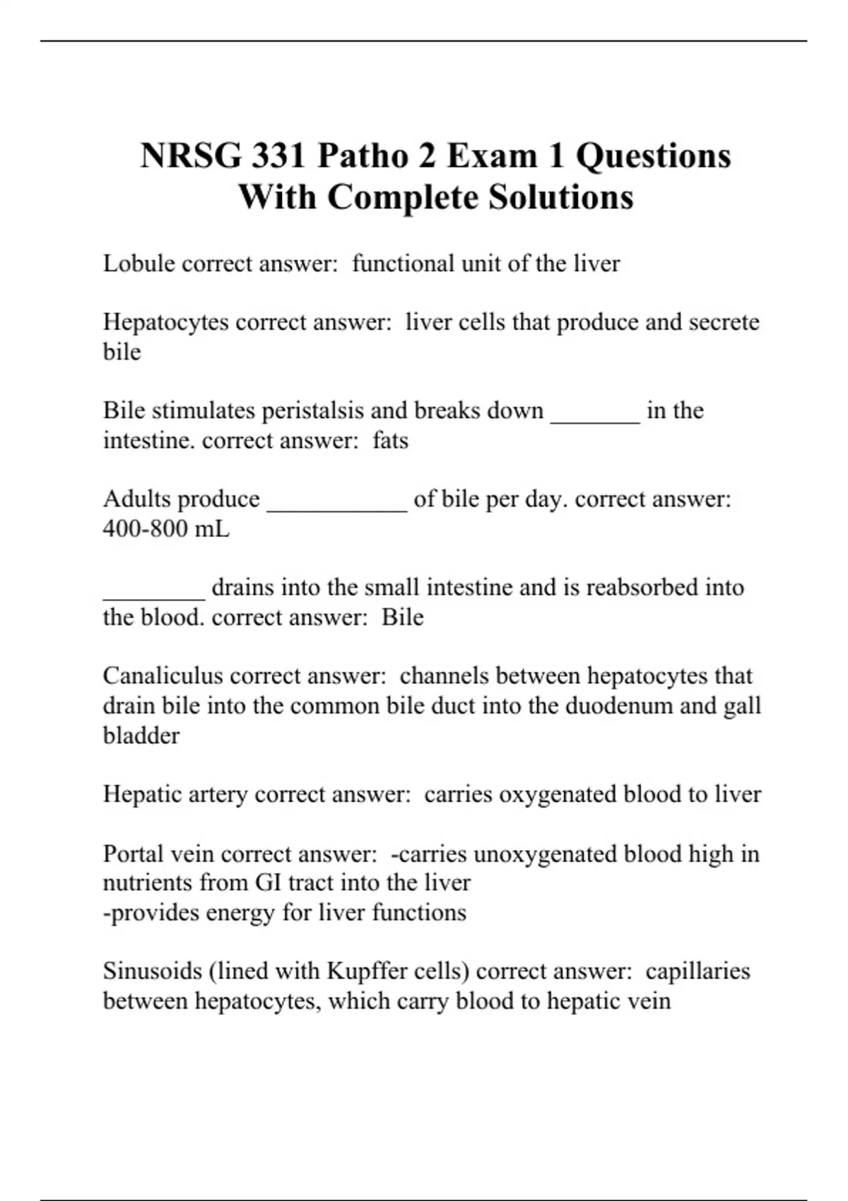 NRSG 331 Patho 2 Exam 1 Questions With Complete Solutions