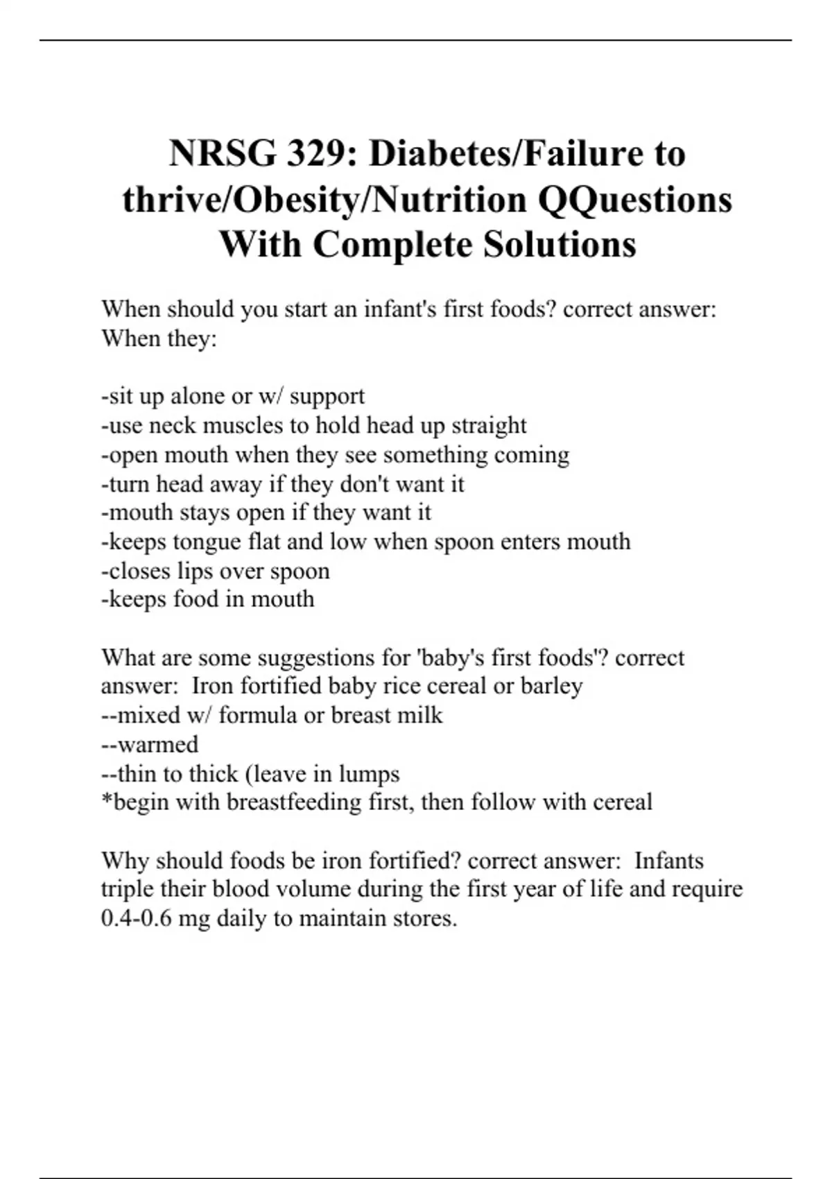 NRSG 329: Diabetes/Failure to thrive/Obesity/Nutrition QQuestions With Complete Solutions