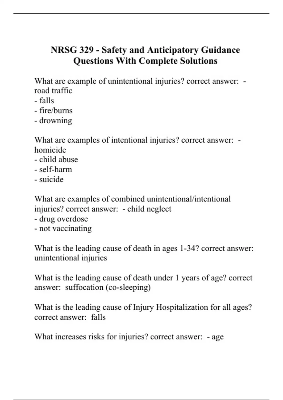NRSG 329 - Safety and Anticipatory Guidance Questions With Complete Solutions