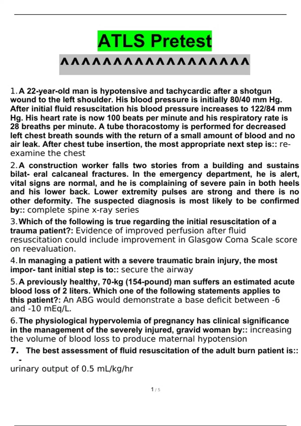 ATLS Pretest with complete solutions