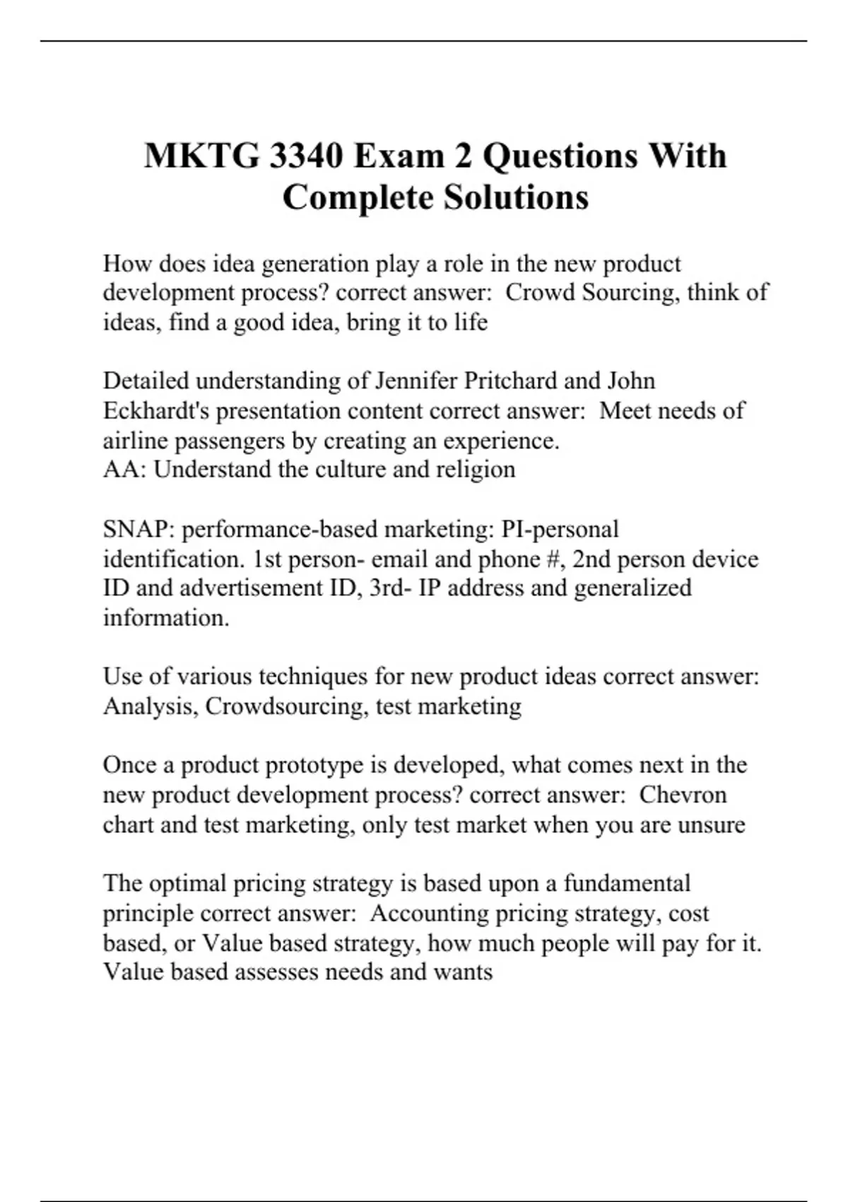 MKTG 3340 Exam 2 Questions With Complete Solutions