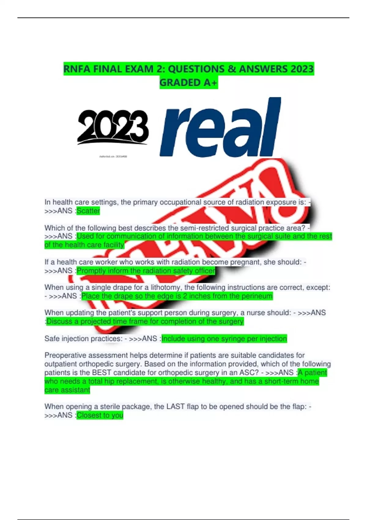 RNFA FINAL EXAM 2: QUESTIONS & ANSWERS 2023 GRADED A+