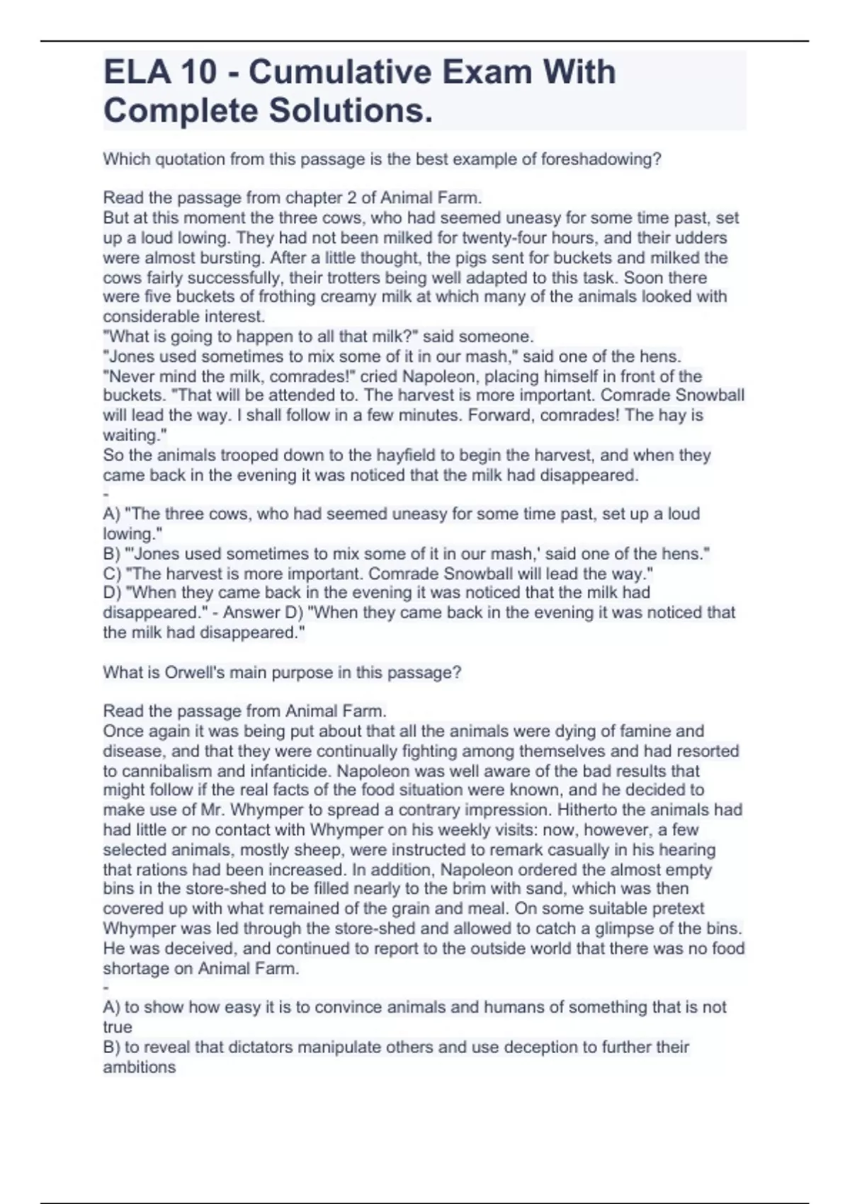 ELA 10 - Cumulative Exam With Complete Solutions.