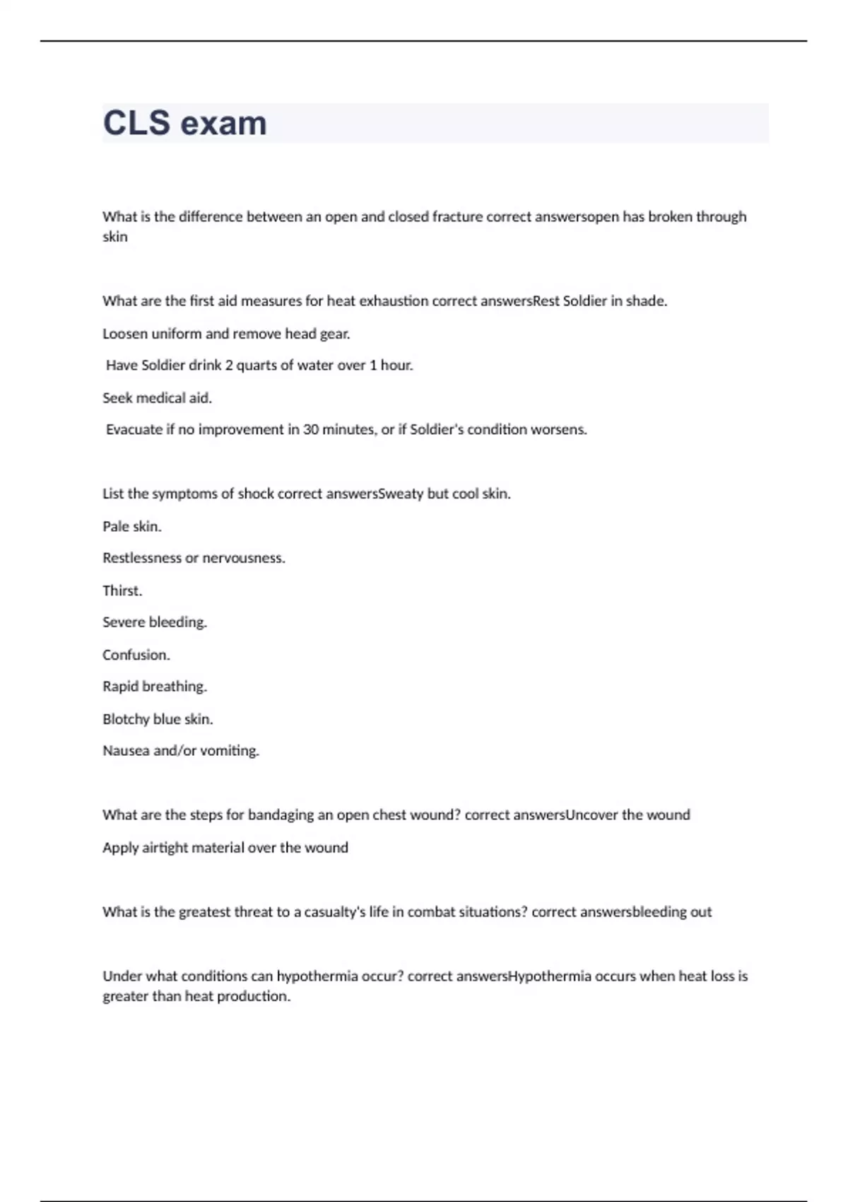 cls exam 2023 with 100 correct answers
