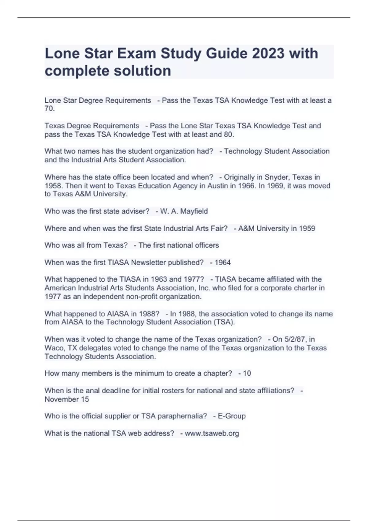 Lone Star Exam Study Guide 2023 with complete solution