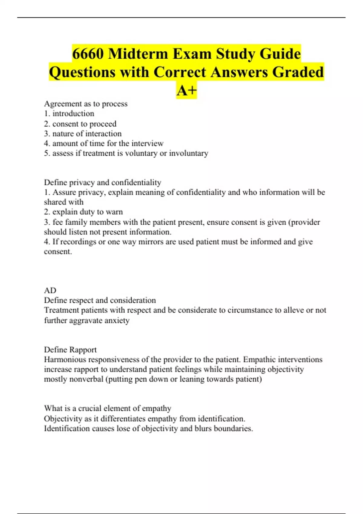 6660 Midterm Exam Study Guide Questions with Correct Answers Graded A+