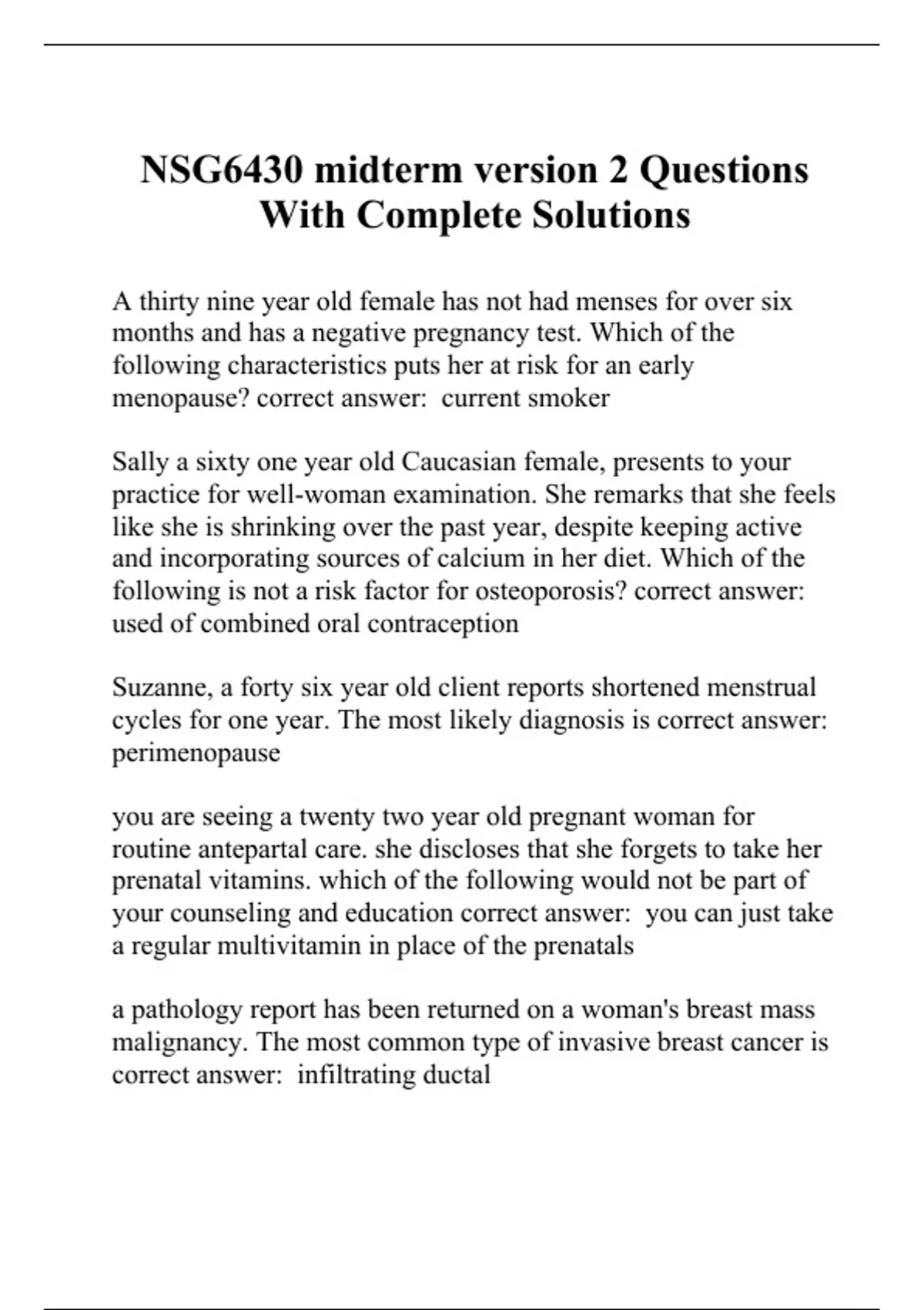 NSG6430 midterm version 2 Questions With Complete Solutions