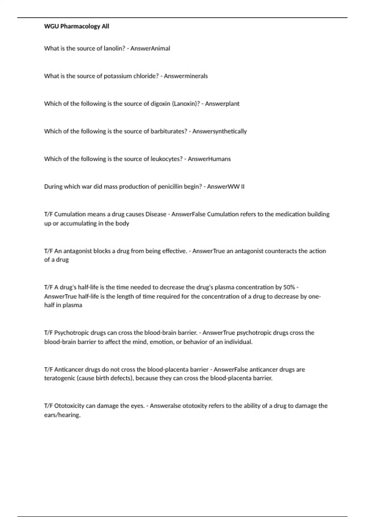 - WGU Pharmacology All, Qs