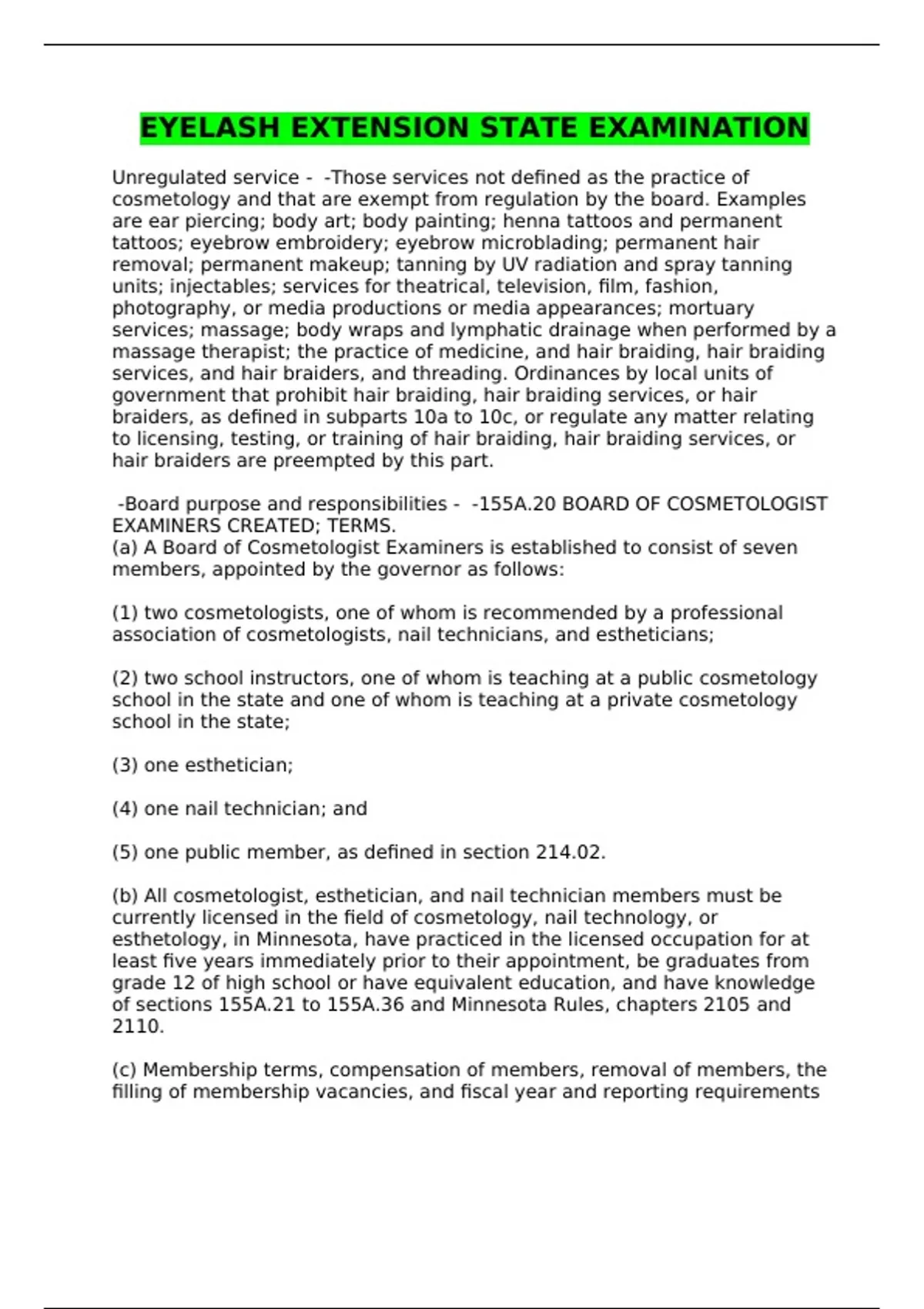 EYELASH EXTENSION STATE EXAMINATION