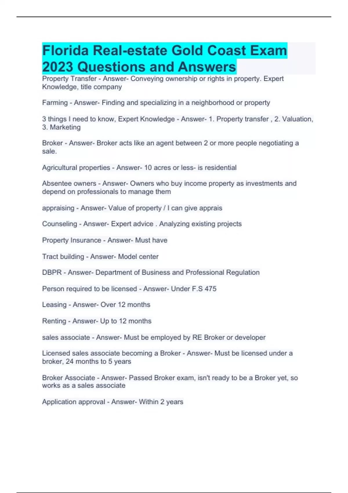 Florida Real-estate Gold Coast Exam 2023 Questions and Answers