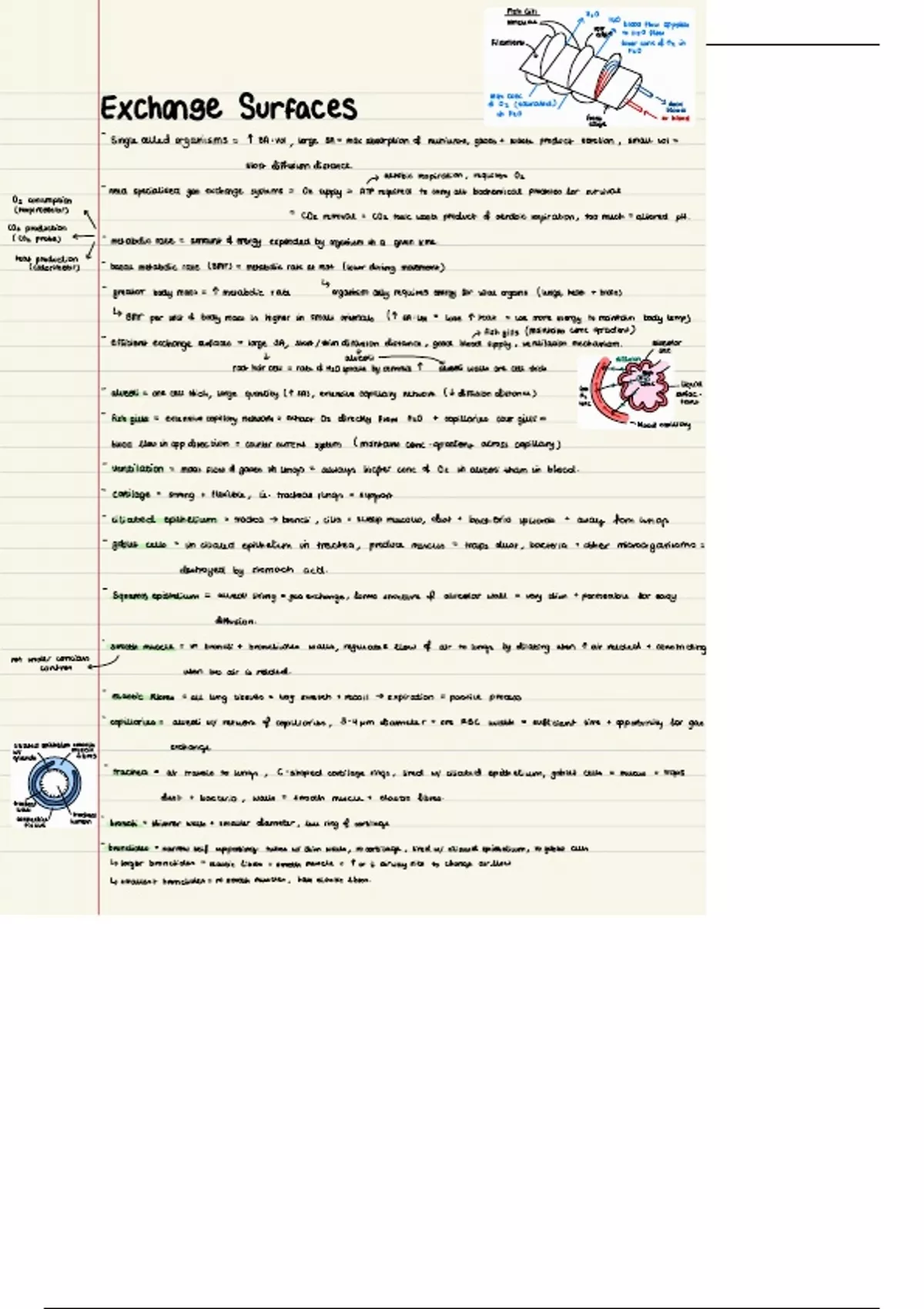 Alevel OCR Biology A notes on Exchange Surfaces from an A* Biology student. Plus diagrams.