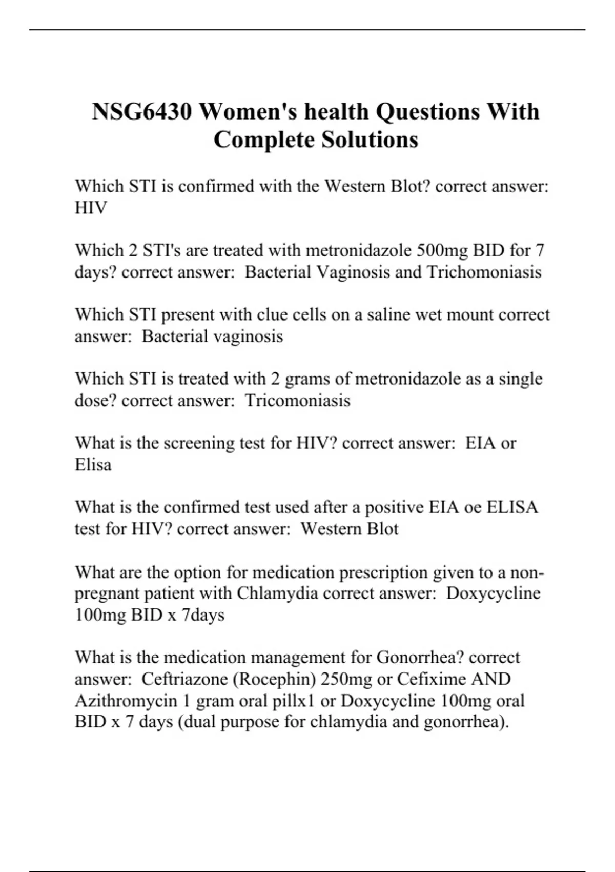 nsg6430 womens health questions with complete sol