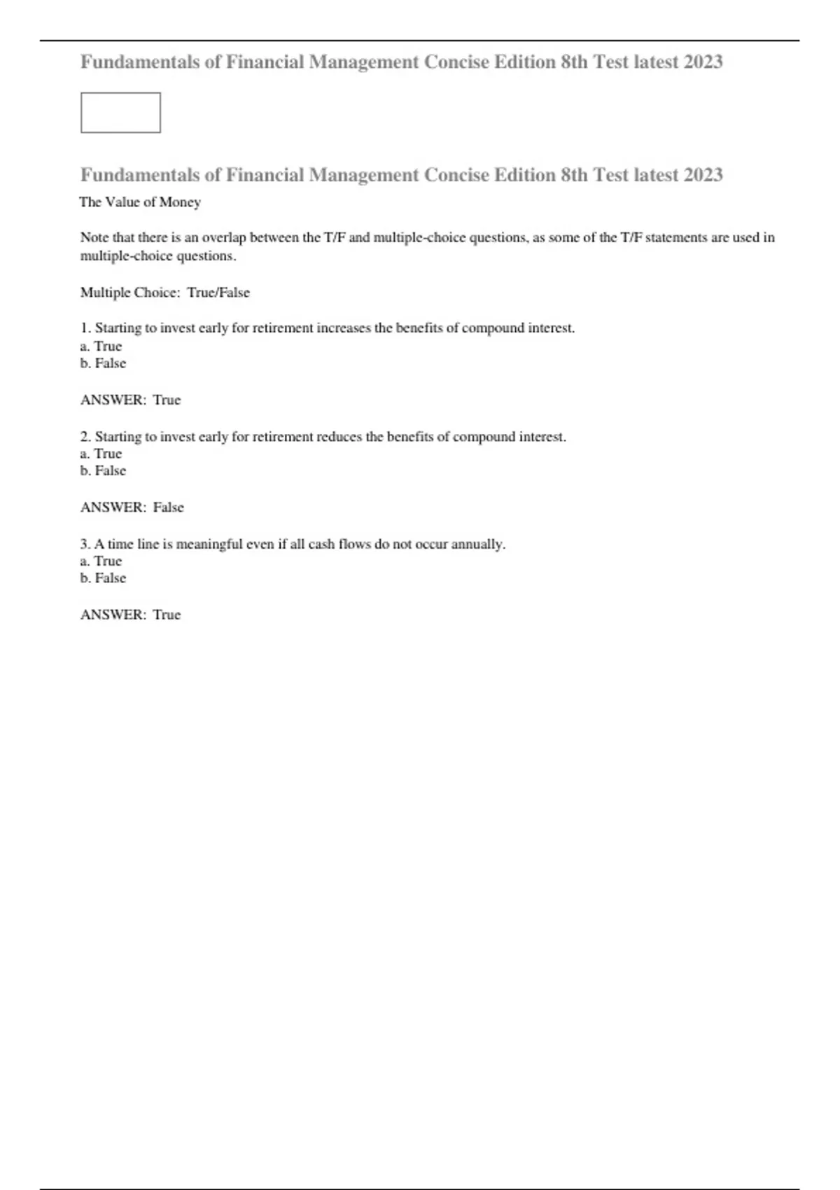 Fundamentals of Financial Management Concise Edition 8th Test latest 2023