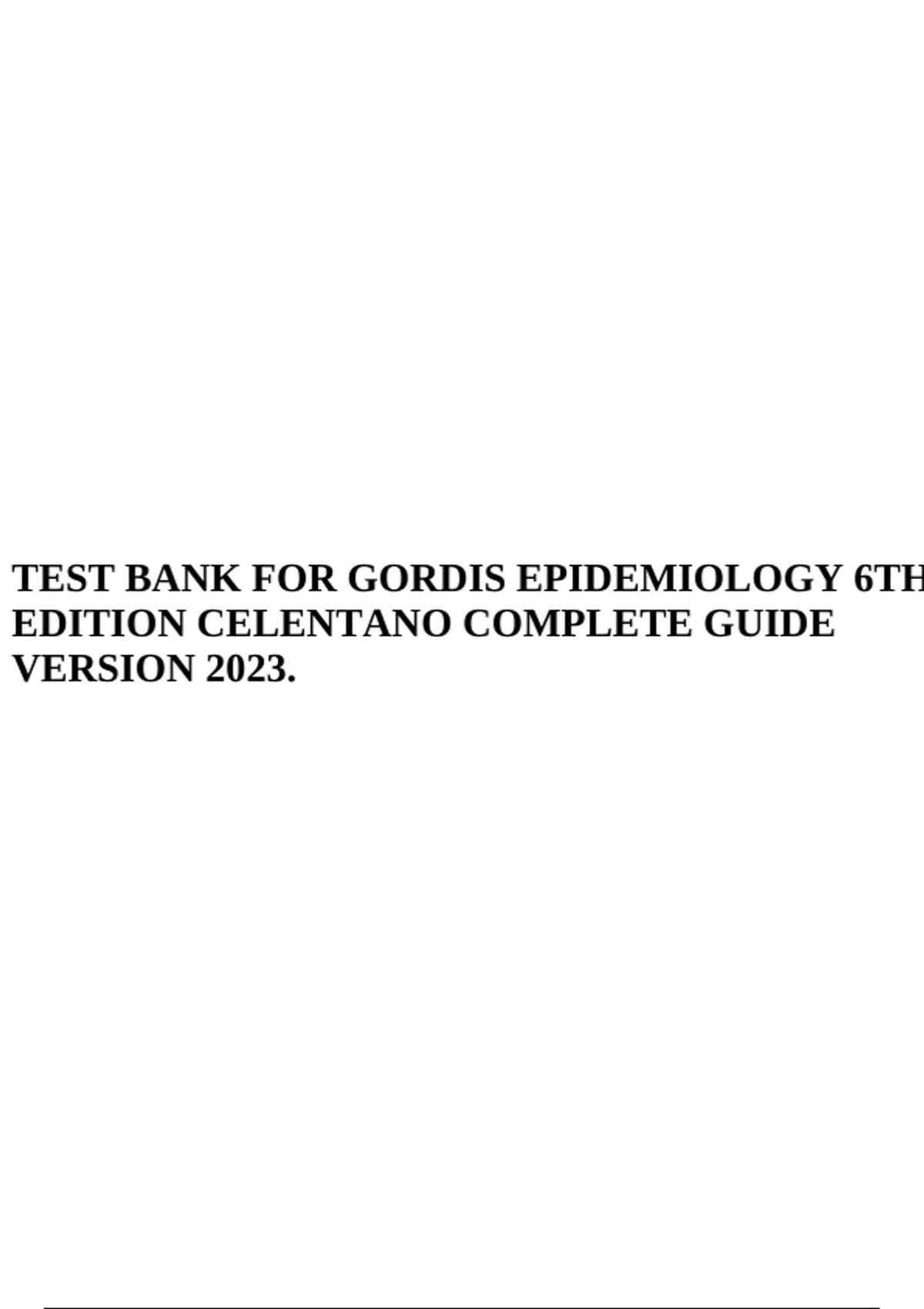 TEST BANK FOR GORDIS EPIDEMIOLOGY 6TH EDITION CELENTANO COMPLETE GUIDE VERSION 2023.