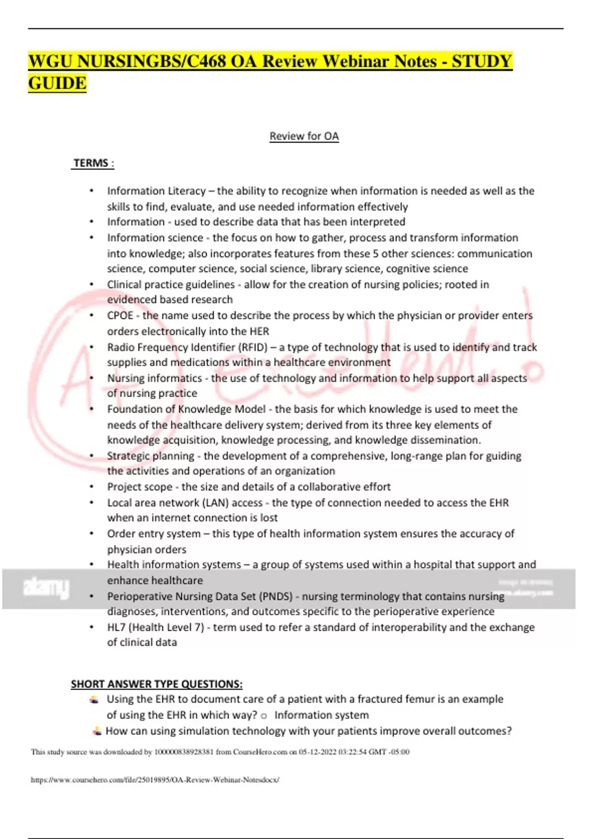WGU NURSINGBS/C468 OA Review Webinar Notes - STUDY GUIDE Review