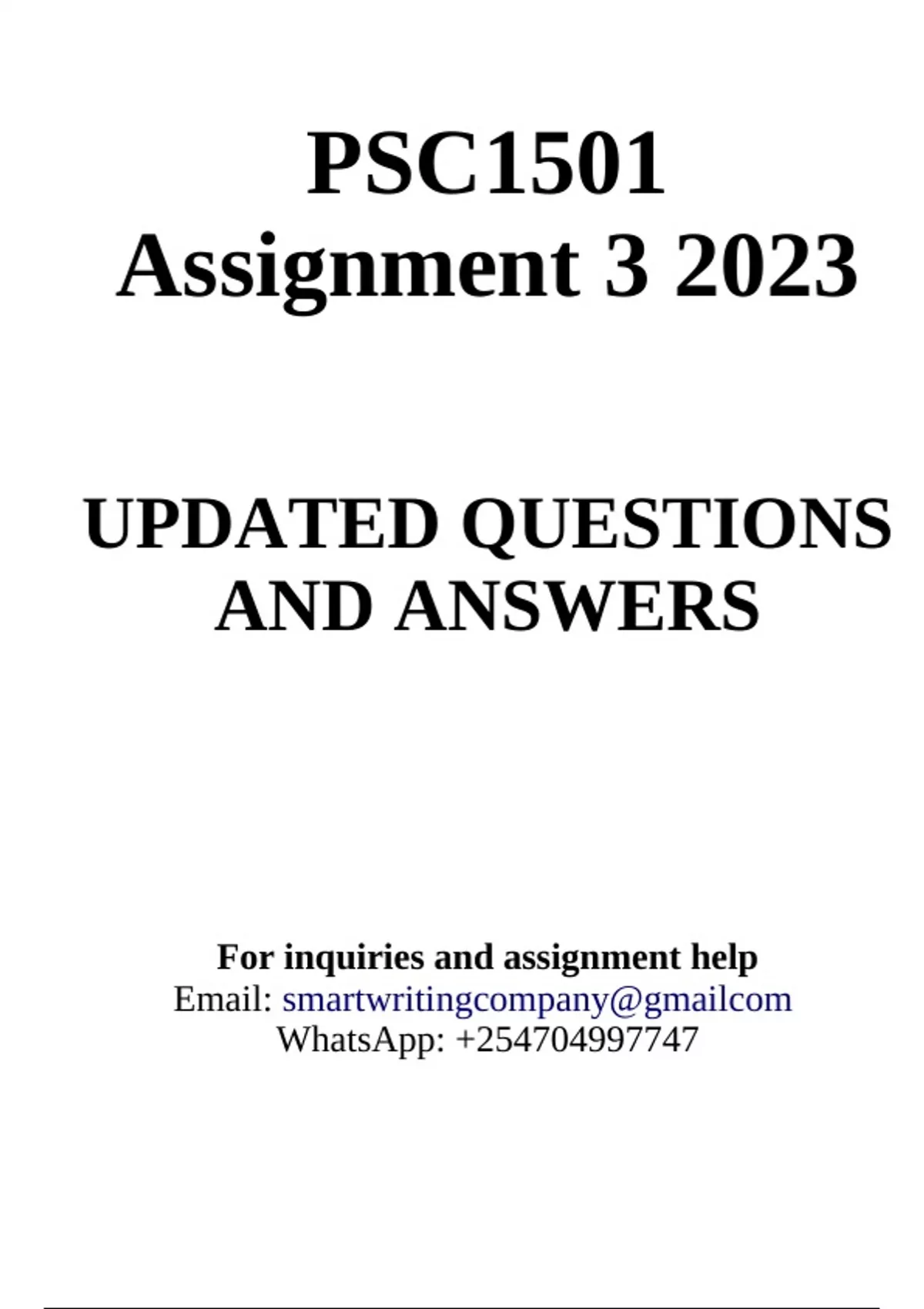 For inquiries and assignment help