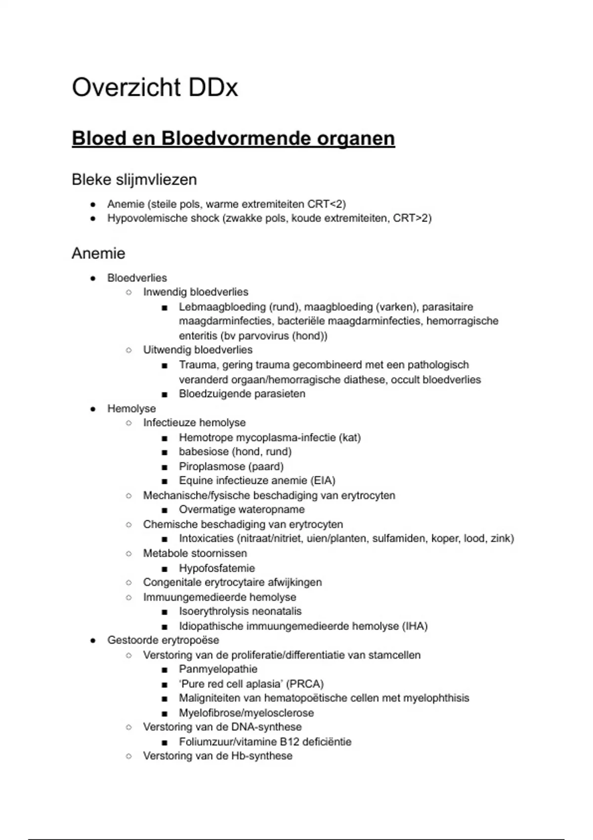 Samenvatting VKR3 (Veterinair Klinisch Redeneren jaar 3) Overzicht Alle DDxen