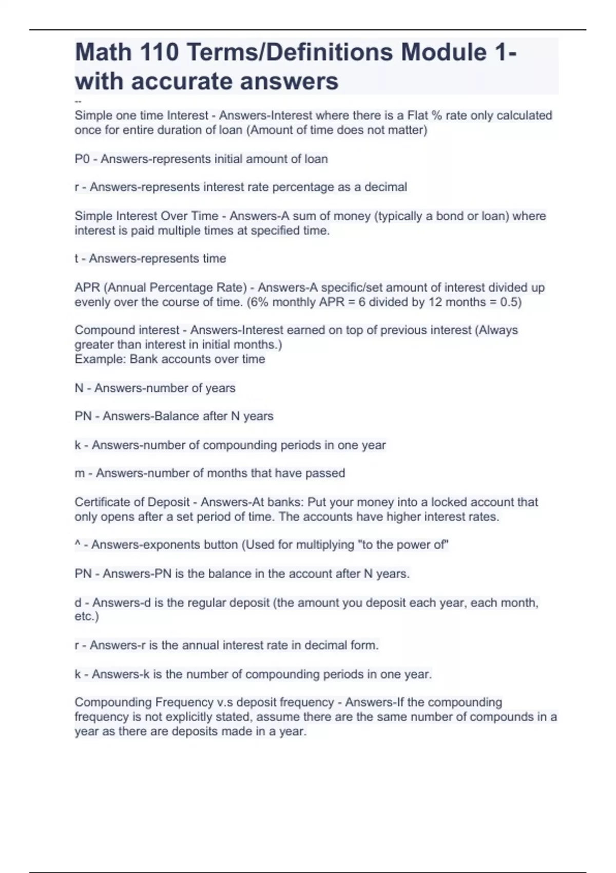 Compounding Frequency v.s deposit frequency - Answers-If the compounding frequency is not explicitly stated, assume there are the same number of compounds in a