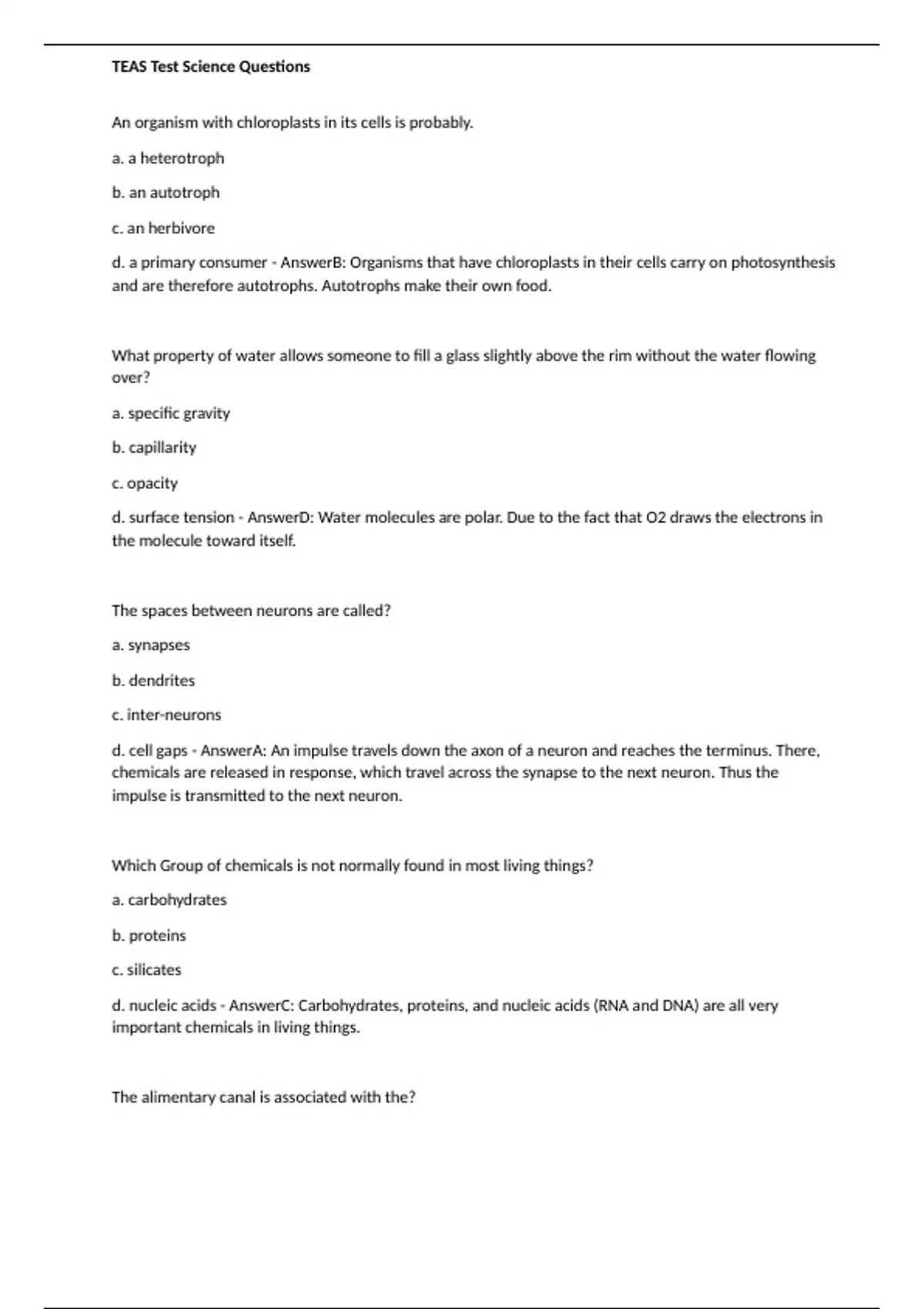 TEAS Test Science Questions & Answers with Complete Solutions update 2023/2024.