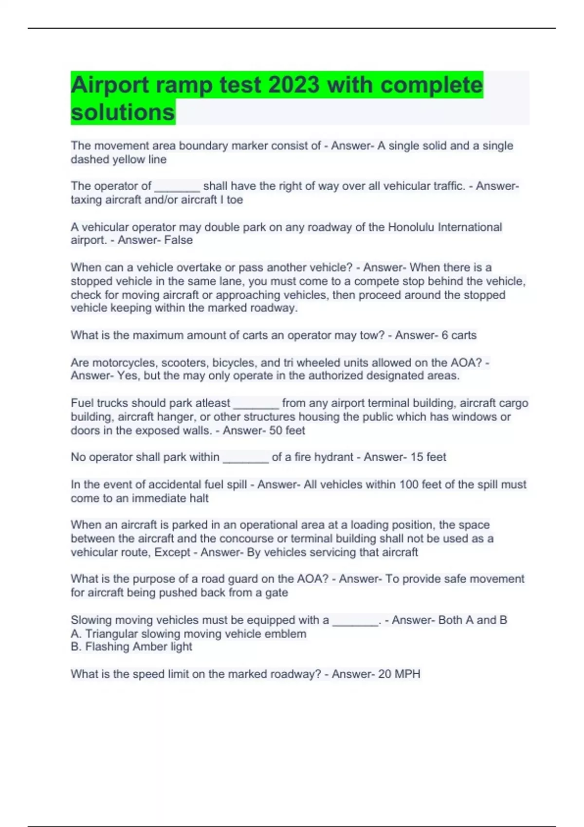 Airport ramp test 2023 with complete solutions