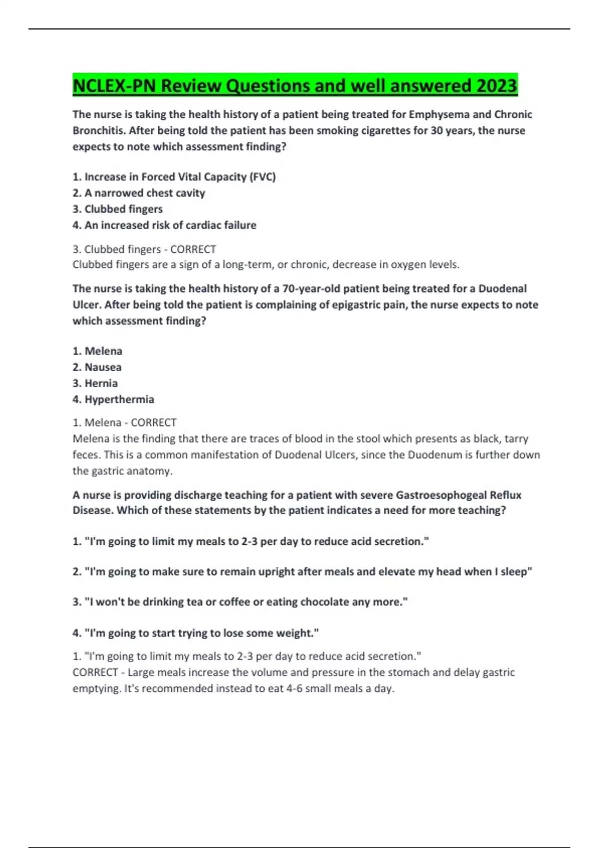NCLEX-PN Review Questions and well answered 2023