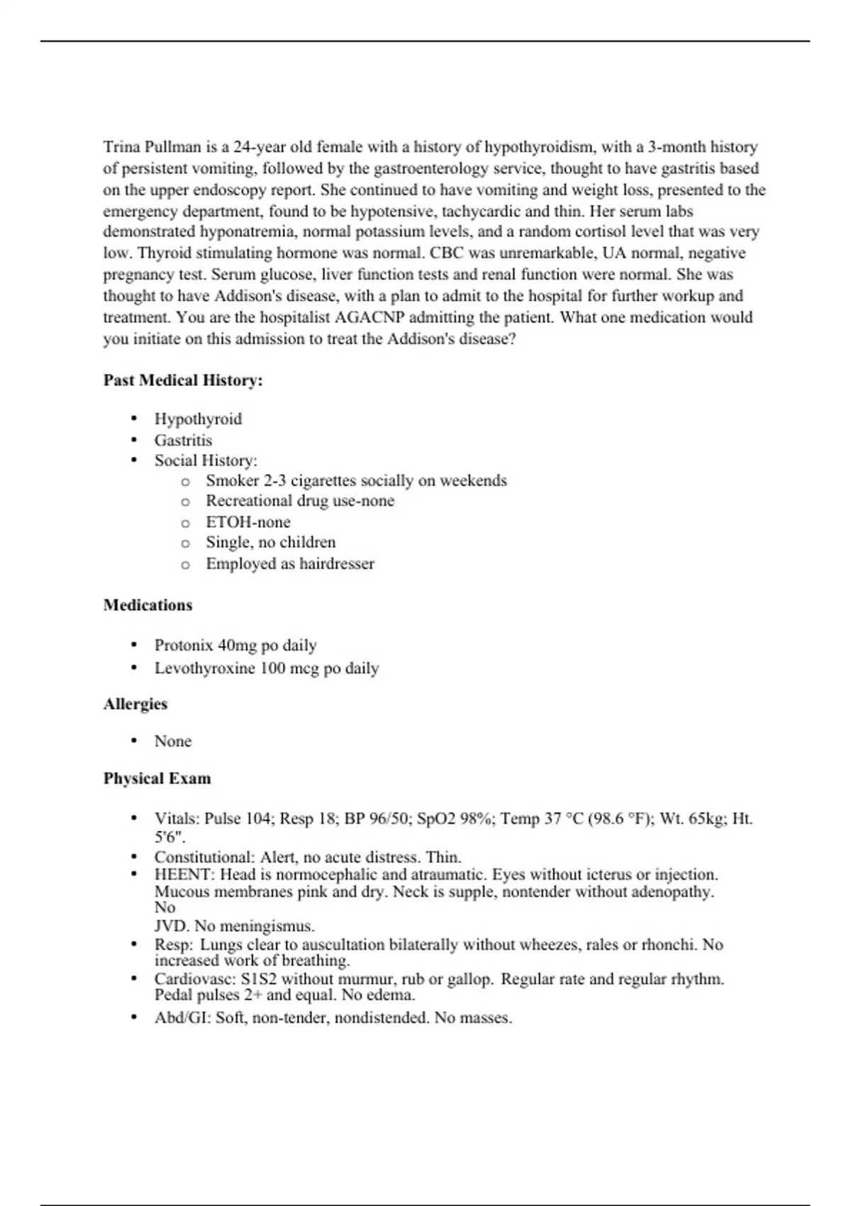NR 567 Week 5 Discussion Case Scenario Discussion; Addison's Disease Medication Chamberlain
