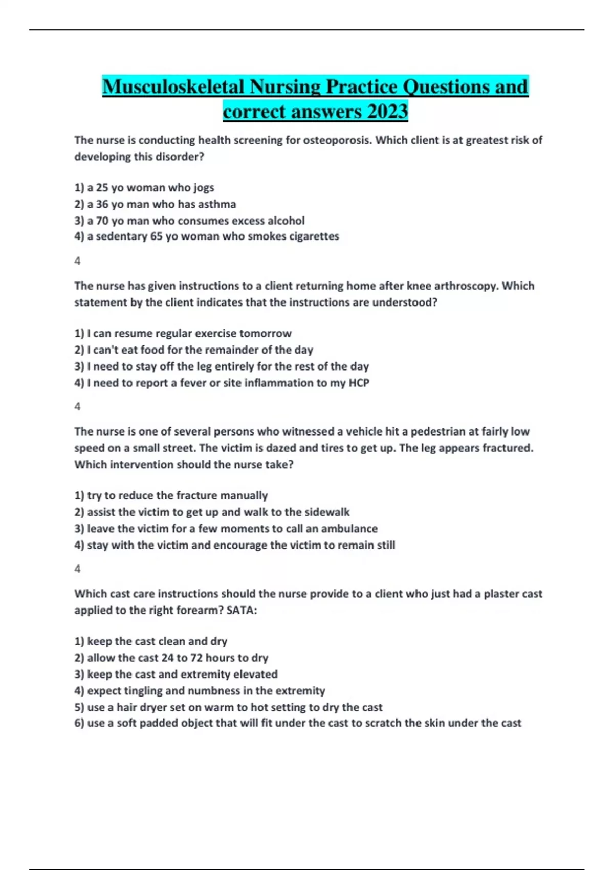 Musculoskeletal Nursing Practice Questions and correct answers 2023