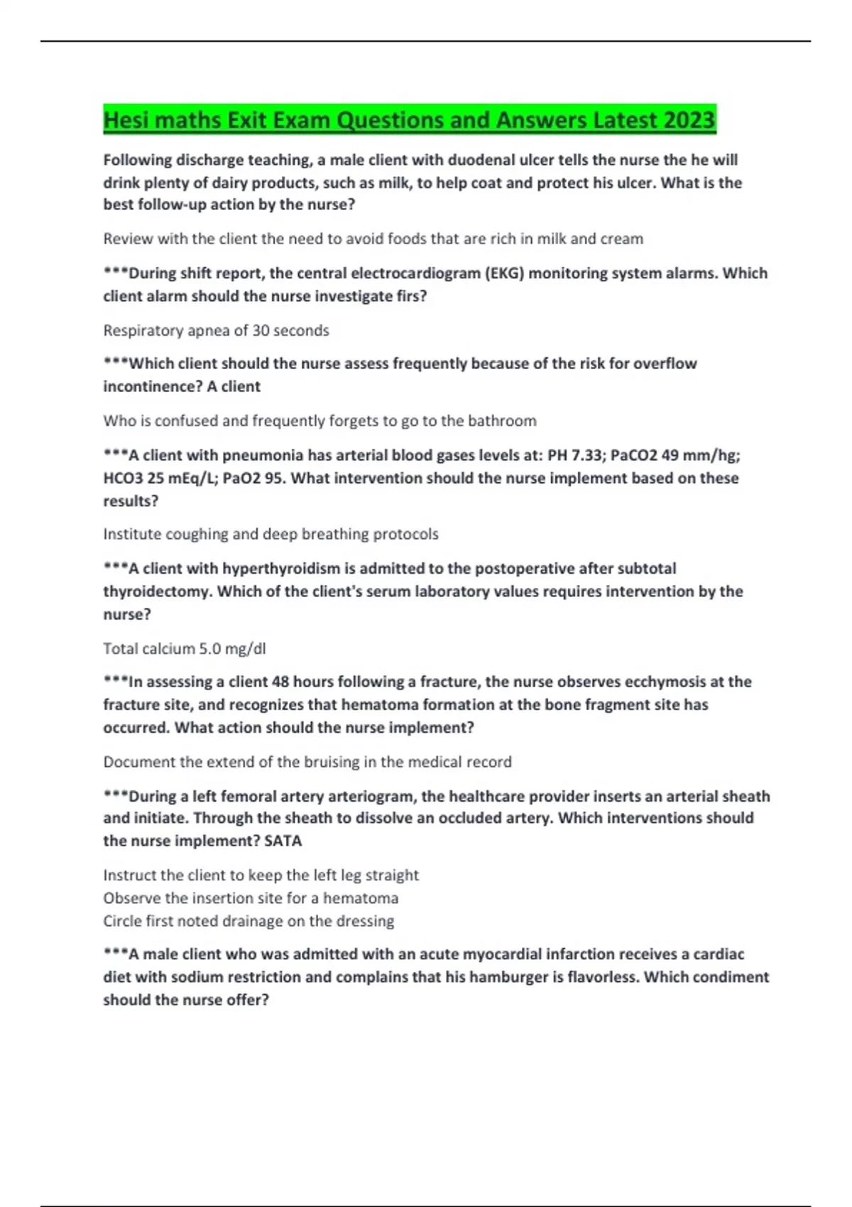 Hesi maths Exit Exam Questions and Answers Latest 2023.