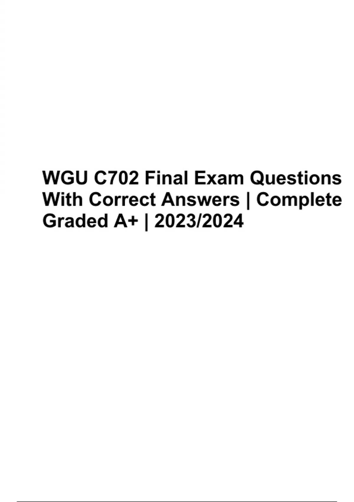 WGU C702 Final Exam Questions With Correct Answers 2023/2024 (Complete Graded A+)