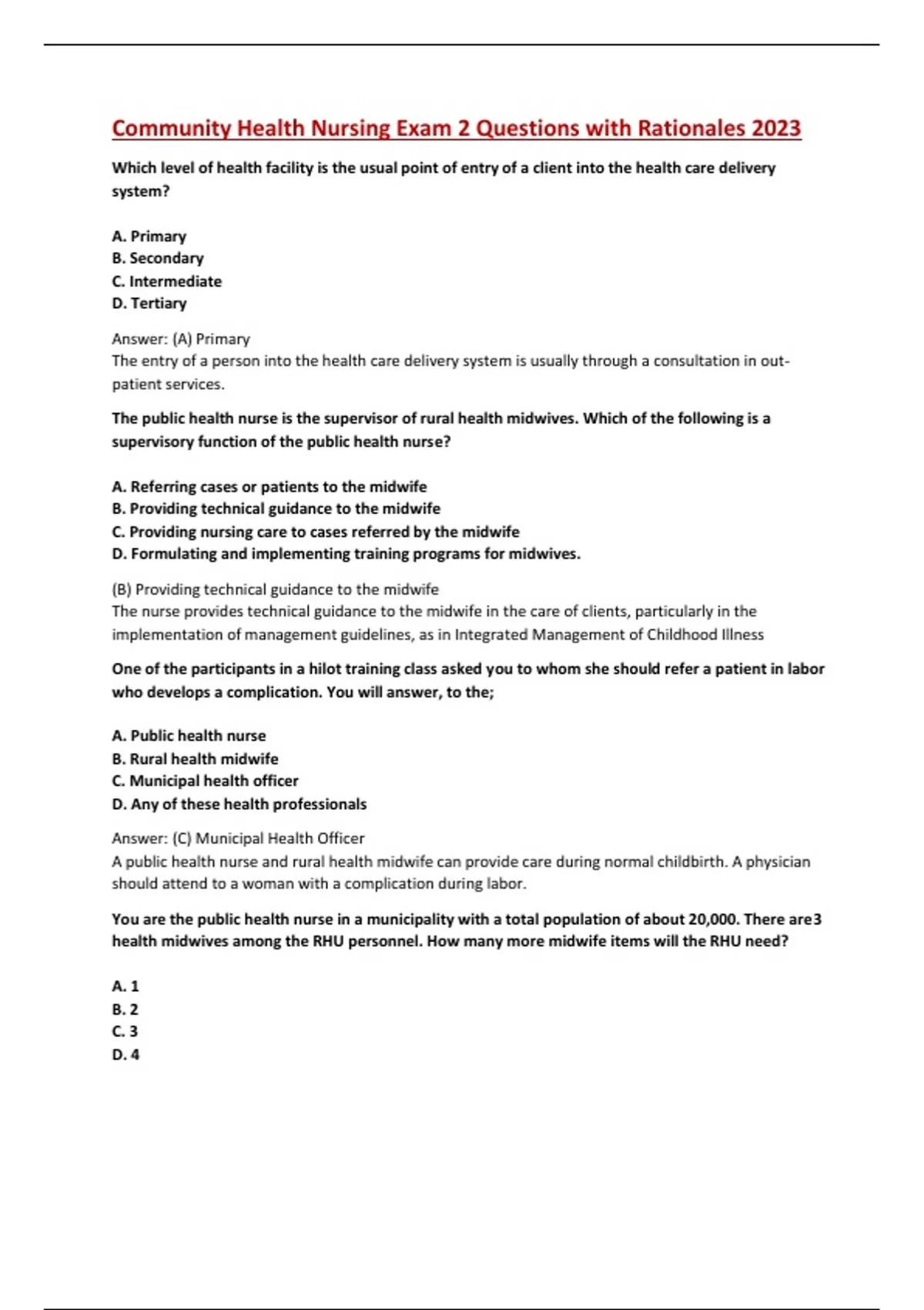 Community Health Nursing Exam 2 Questions with Rationales 2023