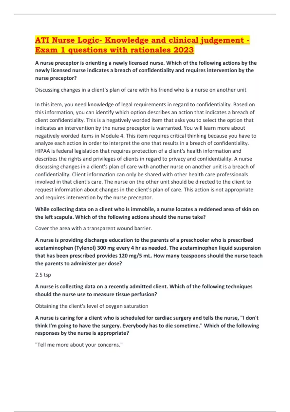 ATI Nurse Logic- Knowledge and clinical judgement - Exam