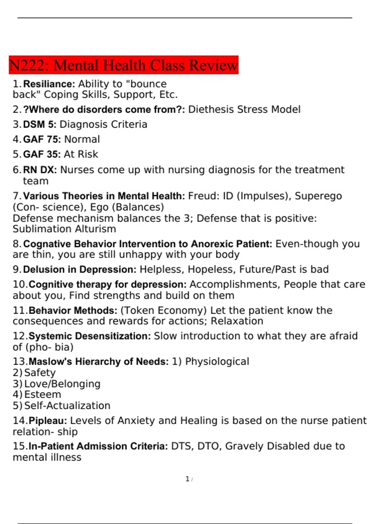 N222 Mental Health Quizzes and Exams Review- West Coast University