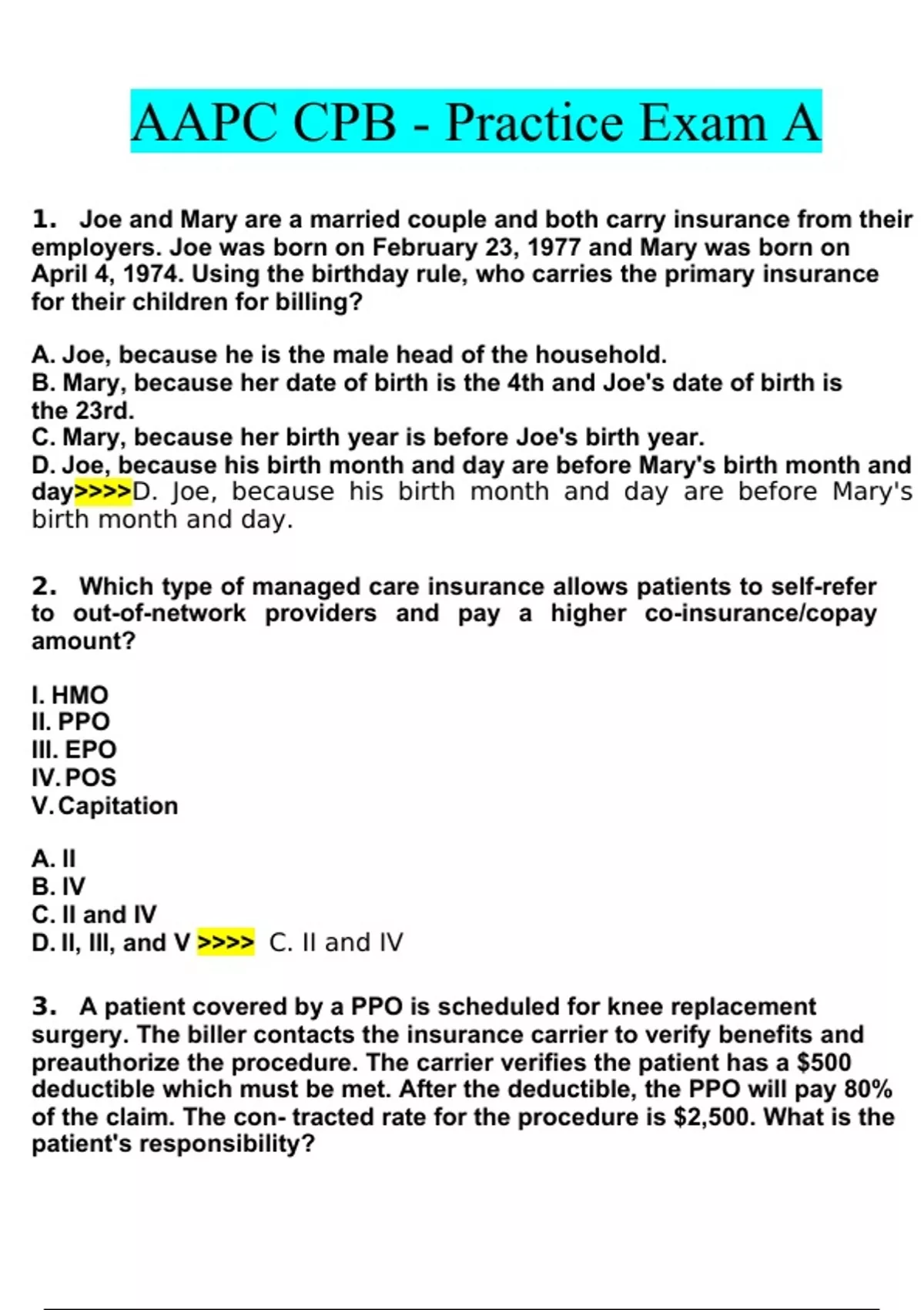 AAPC CPB Practice Exam Questions and Answers