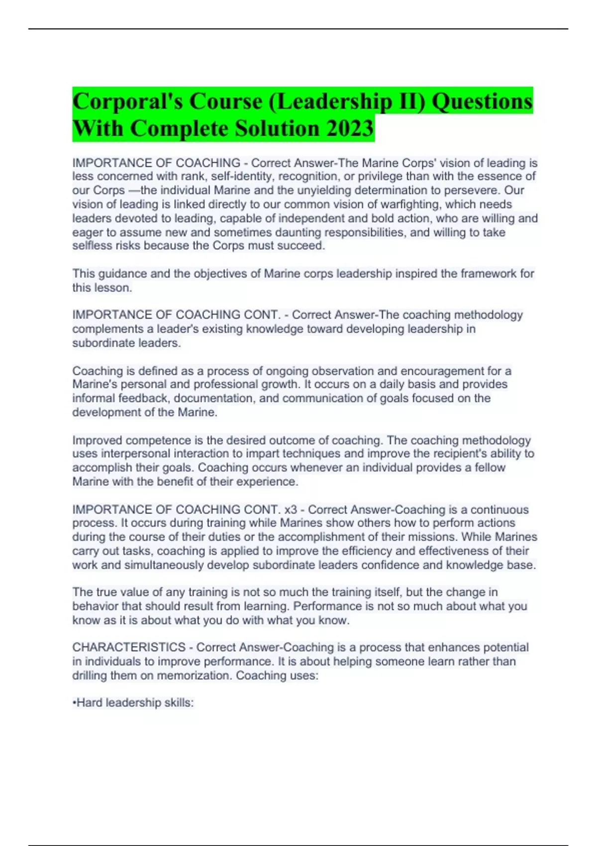 Corporal's Course (Leadership II) Questions With Complete Solution 2023