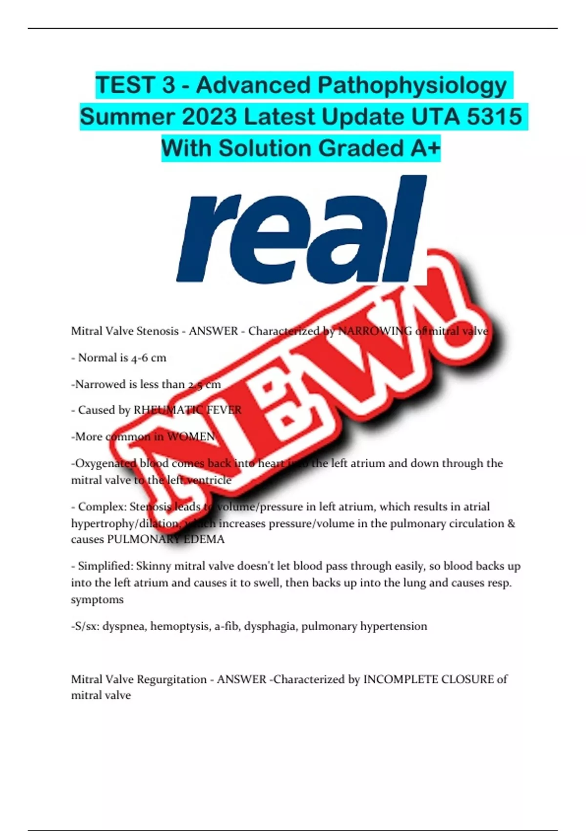 TEST 3 - Advanced Pathophysiology Summer 2023 Latest Update UTA 5315 With Solution Graded A+