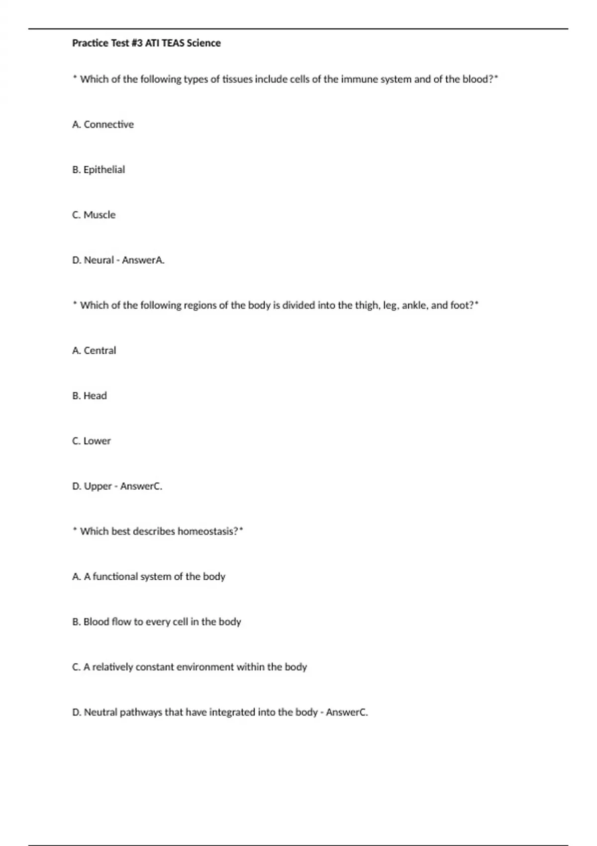 Practice Test #3 ATI TEAS Science Questions & Answers with Correct Solutions.
