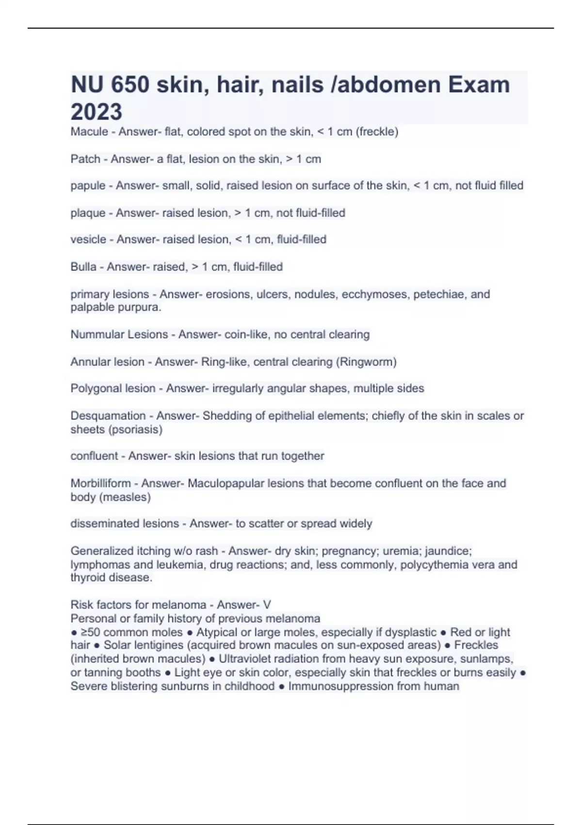 NU 650 skin, hair, nails /abdomen Exam 2023