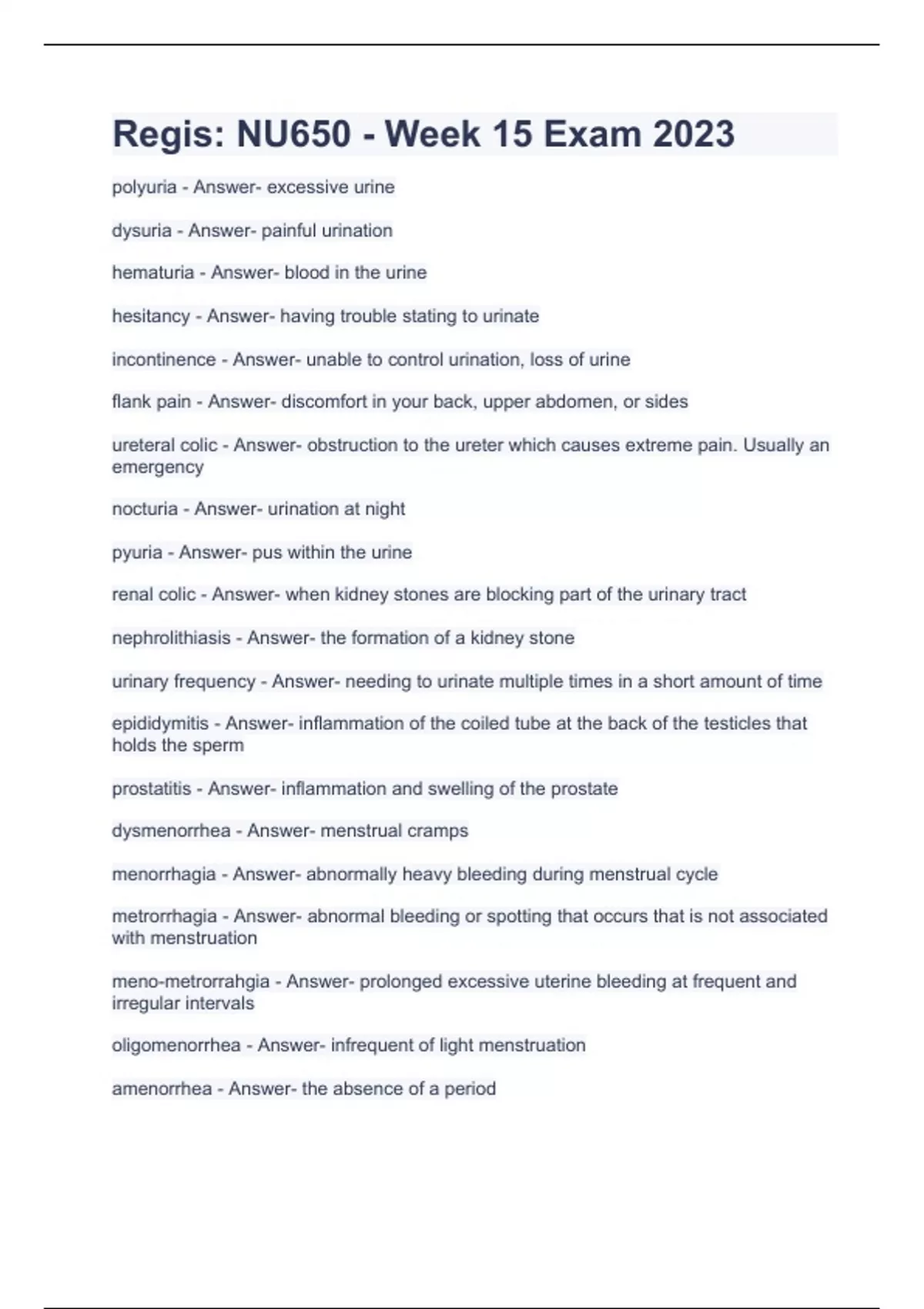 Regis: NU650 - Week 15 Exam 2023