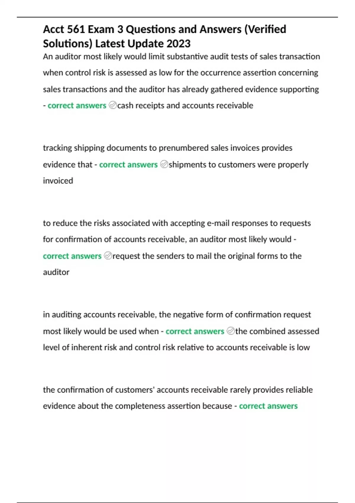 Acct 561 Exam 3 Questions and Answers (Verified Solutions) Latest Update 2023