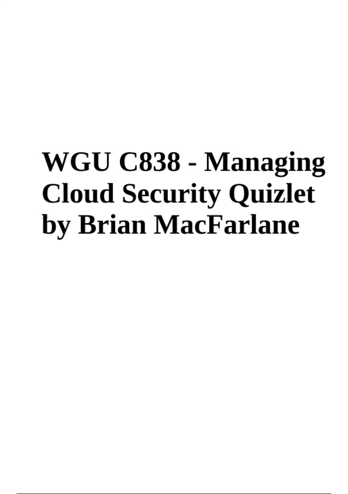 WGU C838 - Managing Cloud Security Quizlet by Brian MacFarlane