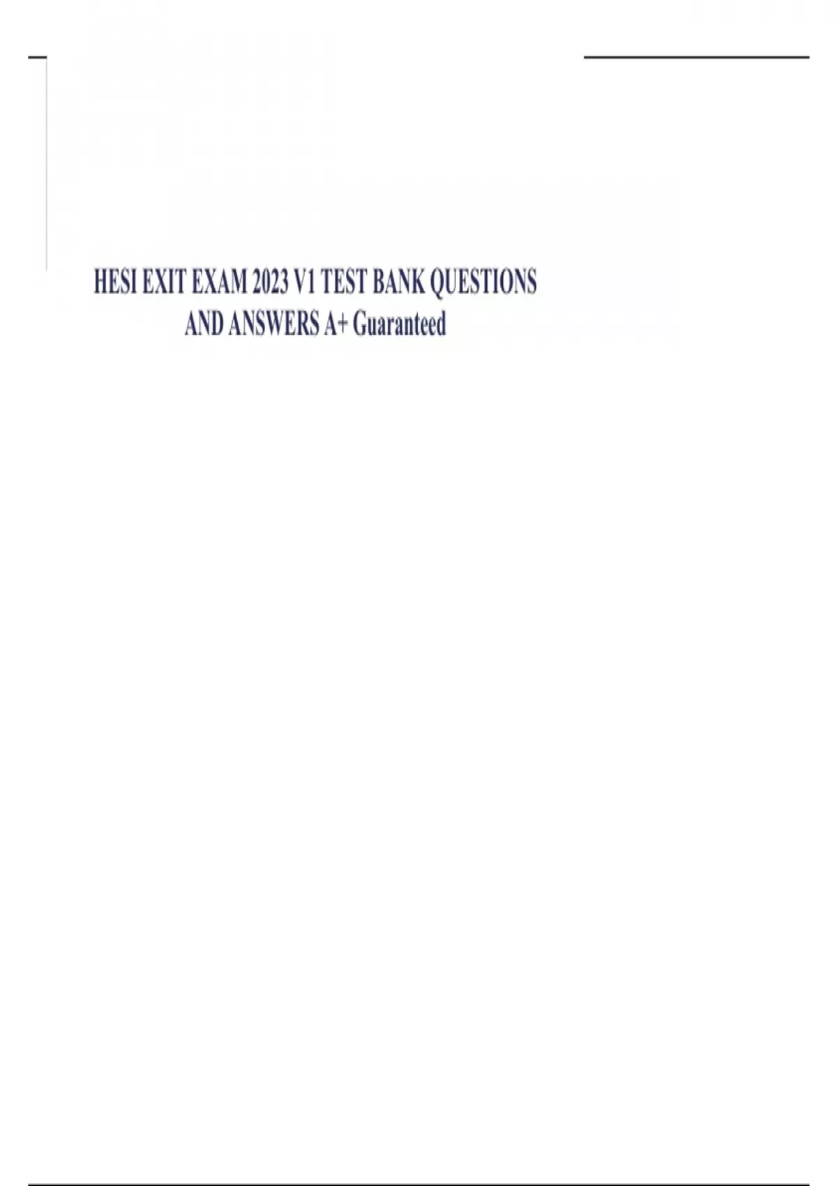HESI EXIT EXAM 2023 V1 TEST BANK QUESTIONS AND ANSWERS A+ Guaranteed