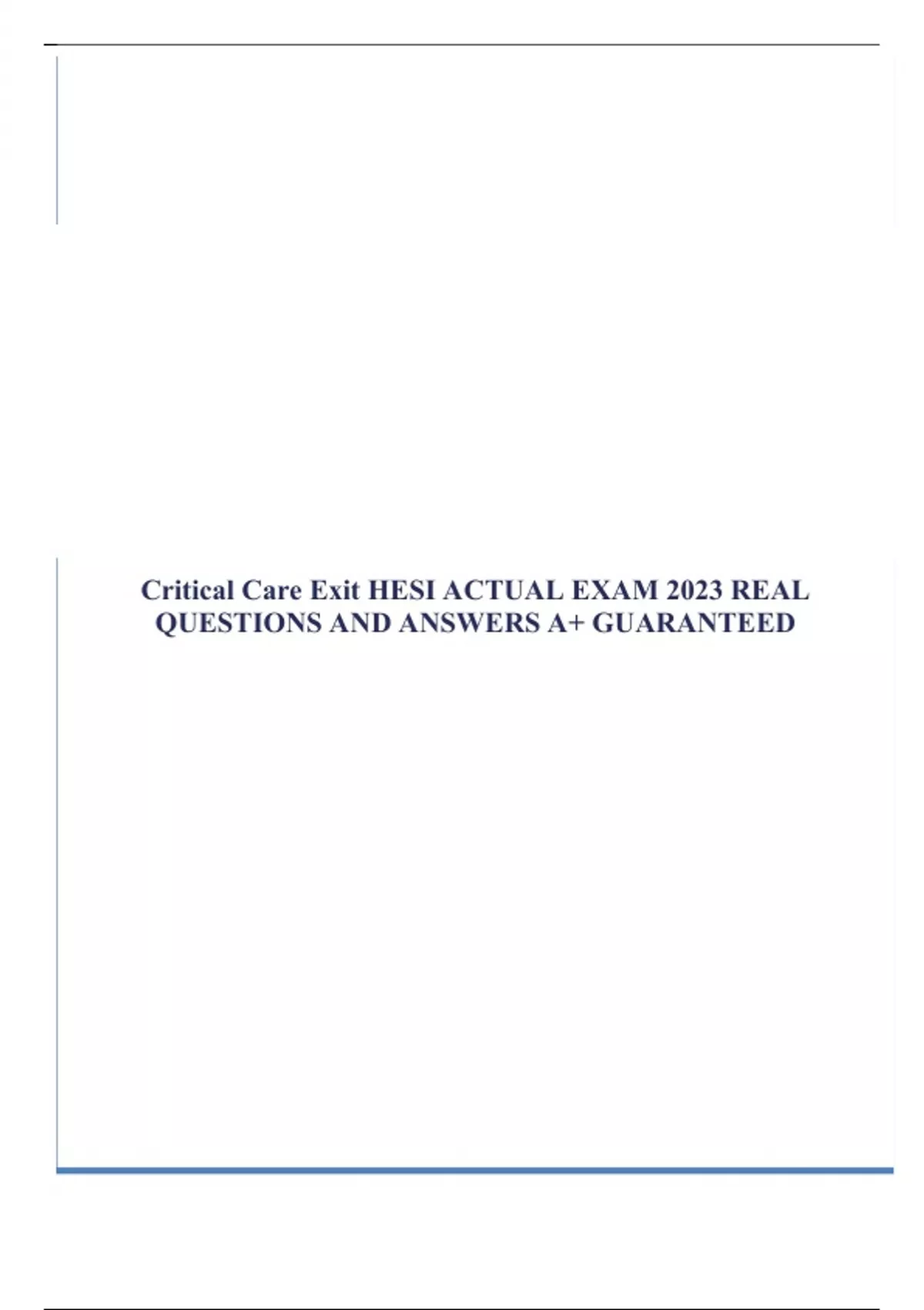 Critical Care Exit HESI ACTUAL EXAM 2023 REAL QUESTIONS AND ANSWERS A+ GUARANTEED